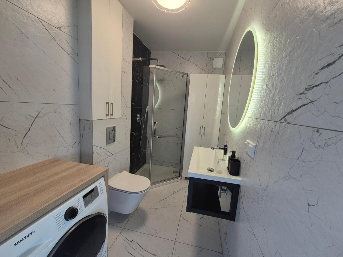 Apartament z 1 sypialnią. This apartment includes 1 living room, 1 separate bedroom and 1 bathroom with a shower. The apartments kitchen is available for cooking and storing food. Boasting a terrace with garden views, this apartment also offers a washing machine and a flat-screen TV. The unit has 2 beds. Apartament - 3 osobowy. Powierzchnia pokoju ok.: 35 mkw.