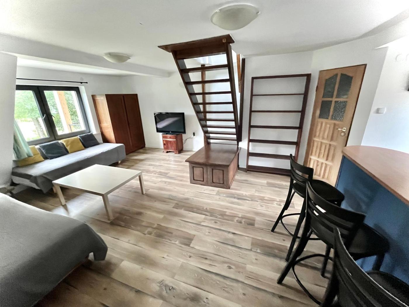 Apartament z widokiem na ogród. This apartment features a kitchen, a seating area, 2 separate bedrooms and 1 bathroom with a shower and a hairdryer. Guests will find a refrigerator and kitchenware in the kitchen. The apartment also comes with a barbecue. The apartment features a flat-screen TV, a tea and coffee maker, a dining area, a wardrobe as well as garden views. The unit has 3 beds. Apartament - 4 osobowy. Powierzchnia pokoju ok.: 57 mkw.