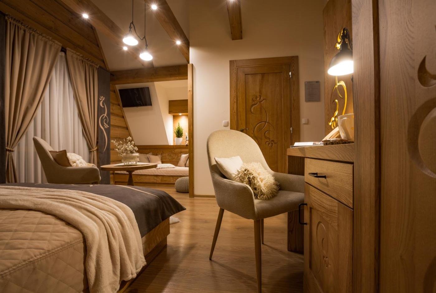 Pokój typu Deluxe z widokiem na góry. The double room offers a private entrance, a wardrobe, a balcony with mountain views as well as a private bathroom boasting a walk-in shower. The unit has 2 beds. Pokój Dwuosobowy - 2 osobowy. Powierzchnia pokoju ok.: 16 mkw. ;
