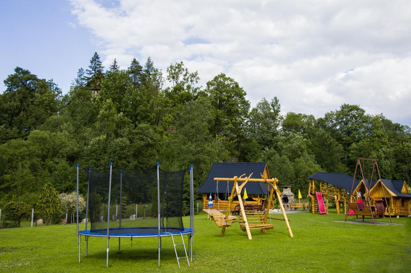 Domek z 3 sypialniami. Boasting a private entrance, this spacious chalet also comes with 1 living room, 3 separate bedrooms and 4 bathrooms with a shower. Guests will find a stovetop, a refrigerator, kitchenware and a microwave in the fully equipped kitchen. The chalet also includes a barbecue. Featuring a terrace with garden views, this chalet also features a seating area and a flat-screen TV. The unit has 9 beds. Domek - 11 osobowy. Powierzchnia pokoju ok.: 90 mkw. ;