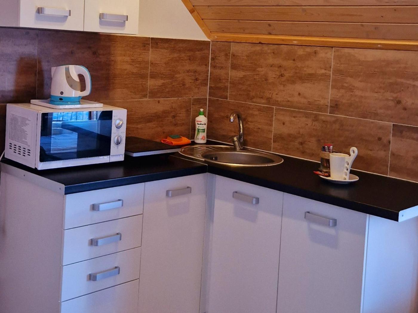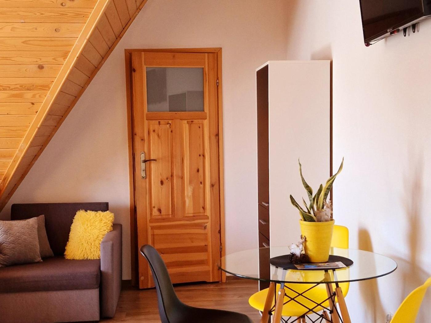 Pokój rodzinny. Guests can make meals in the kitchenette that has a refrigerator, kitchenware and a microwave. The family room offers a washing machine, a tea and coffee maker, a terrace with garden views as well as a private bathroom boasting a shower. The unit has 2 beds. Rodzinny - 4 osobowy. Powierzchnia pokoju ok.: 25 mkw. ;
